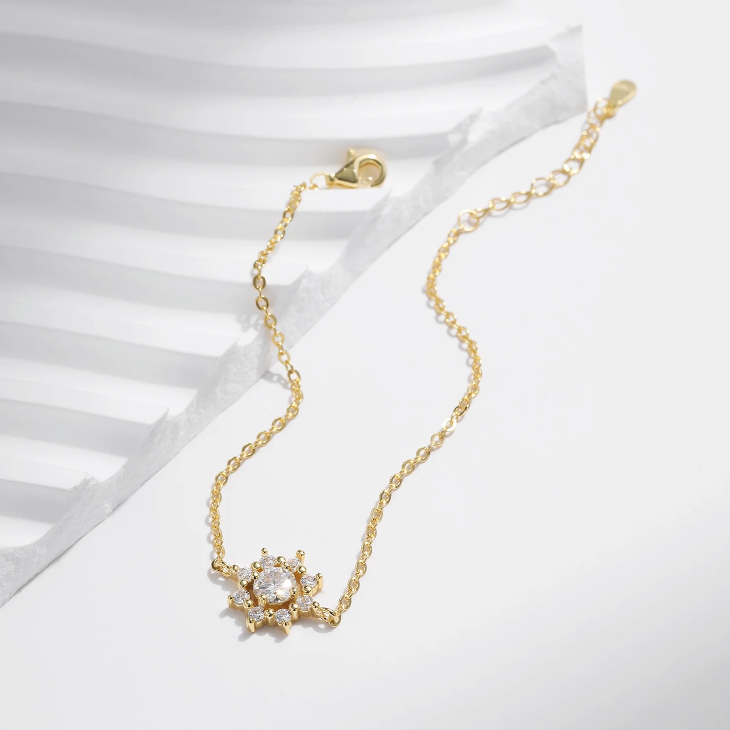 Bracelet Chaîne Flocon de Neige – Argent 925 doré & Moissanite